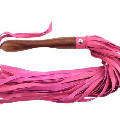 Rouge Garments Pink Leather Flogger with Wooden Handle – Perfect for Sensual Play