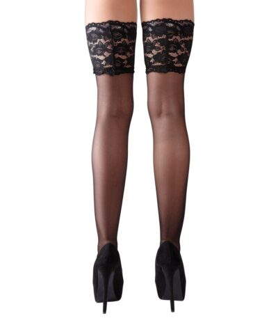 Leg Avenue Black Sheer Thigh Highs with Lace Tops – UK Size 6 to 12