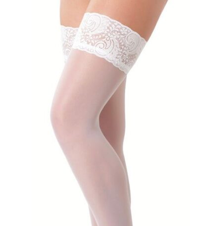 Elegant White Hold-Up Stockings with Floral Lace Top for Timeless Style